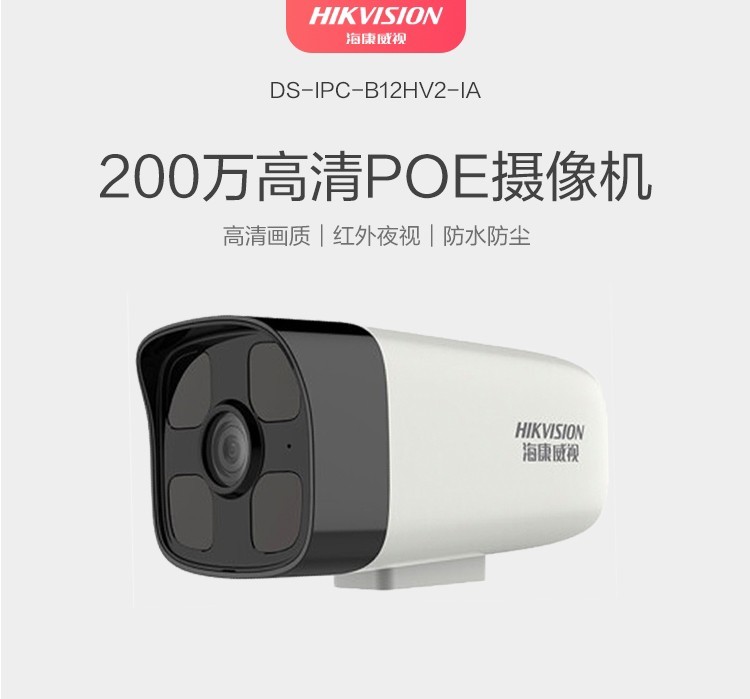 海康威視(HIKVISION)DS-IPC-B12HV2-IA 監(jiān)控攝像機(jī) POE供電/ 4MM焦距